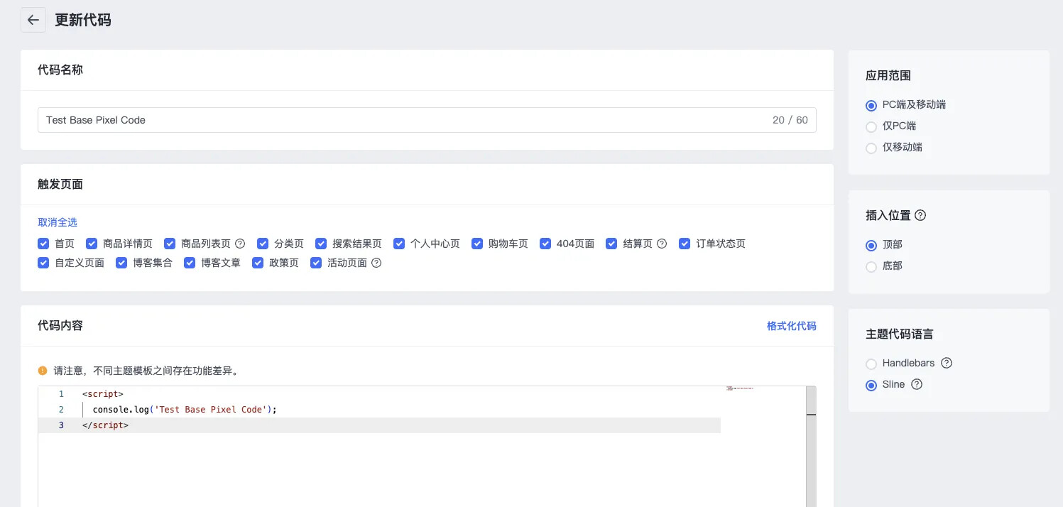 1.2. 将以下代码复制入代码内容,注意修改自己的 **[pixel ID]**